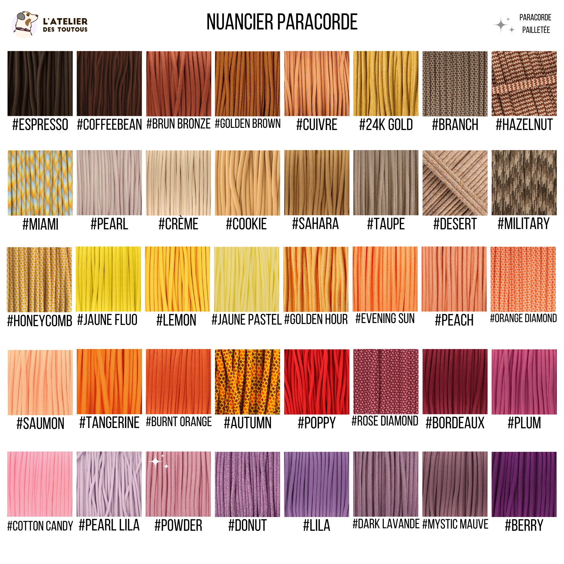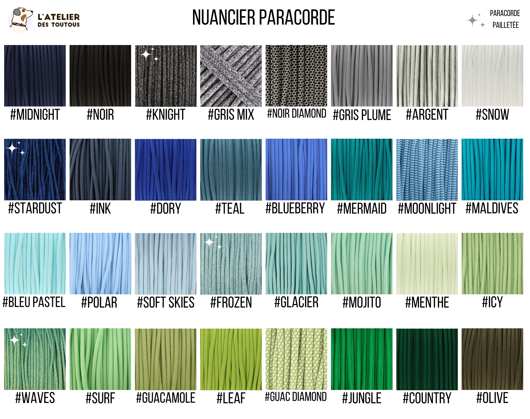 - Paracorde: Charge 249Kg/brin, poids 6.3g/m
