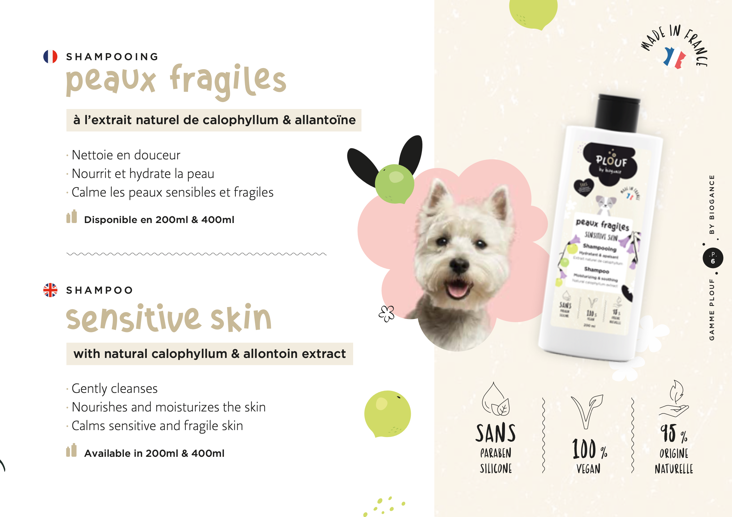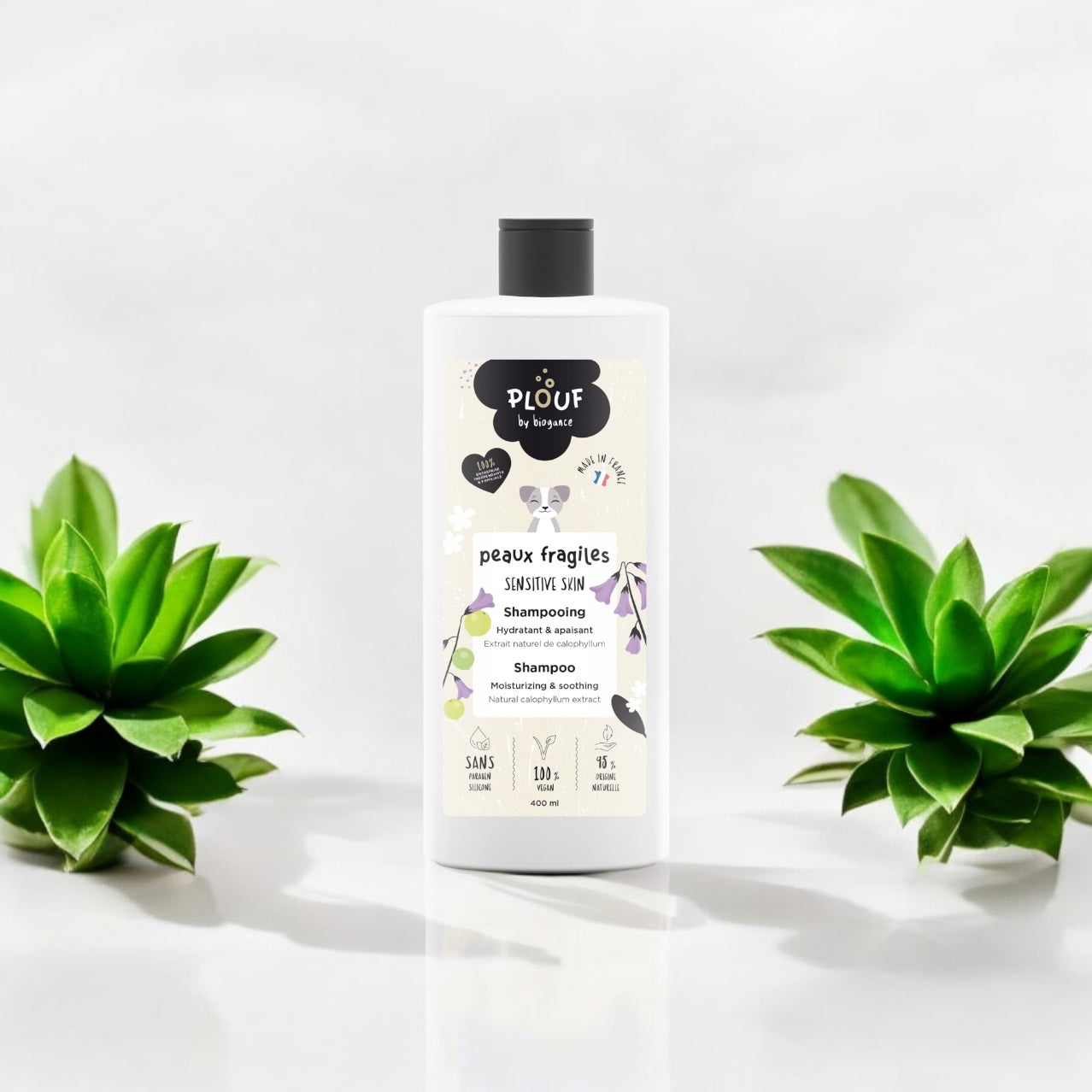 đŸ«§ Le shampooing peaux fragiles Plouf pour chien est formulĂ© Ă  base d’huile de calophyllum.